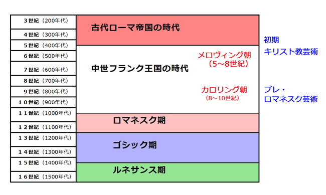 古代ローマ時代が5世紀(400年代)に終わったあと「ロマネスク時代」となるまでの間の