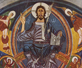 (スペイン・タウイのサント・クリメント聖堂、「荘厳のキリスト」のフレスコ画、12世紀)