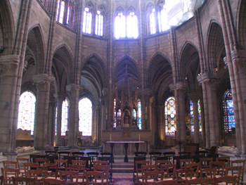 (パリ近郊、サン=ドニ大聖堂の内陣部分、1136年から建設開始)