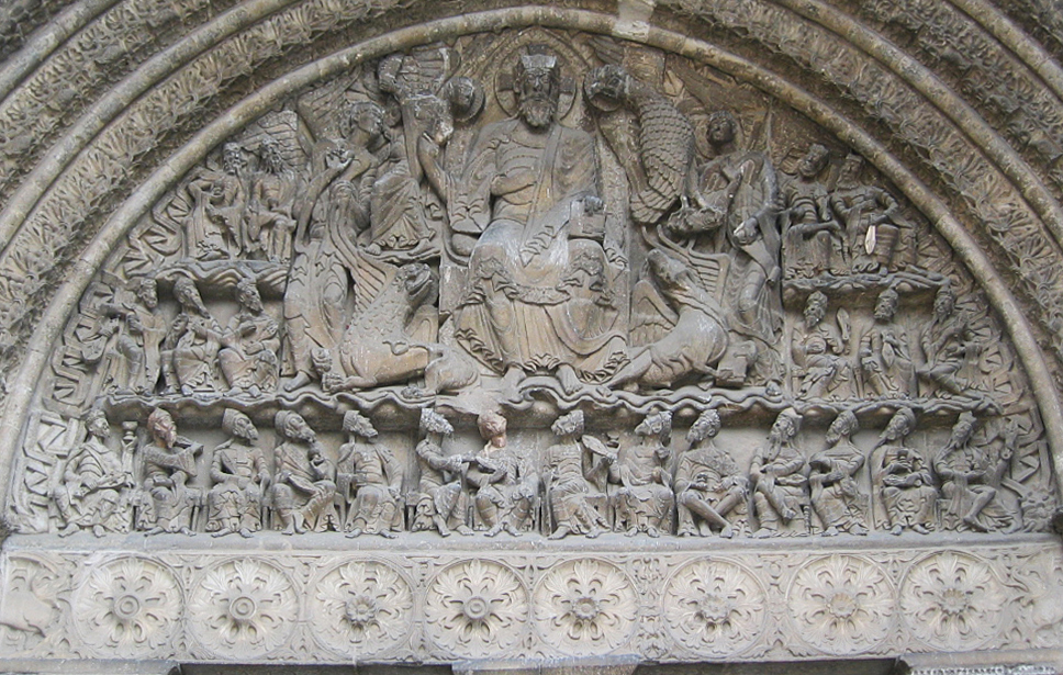 伝わったということになります。教会入口のタンパンに「黙示録のキリスト」を表現するという着想は、