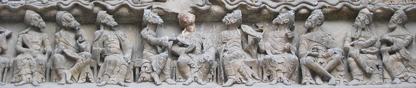 ・モワサックでは長老たちを円形に配置できなかったので、半円形の中に段状に重ねて並べている。