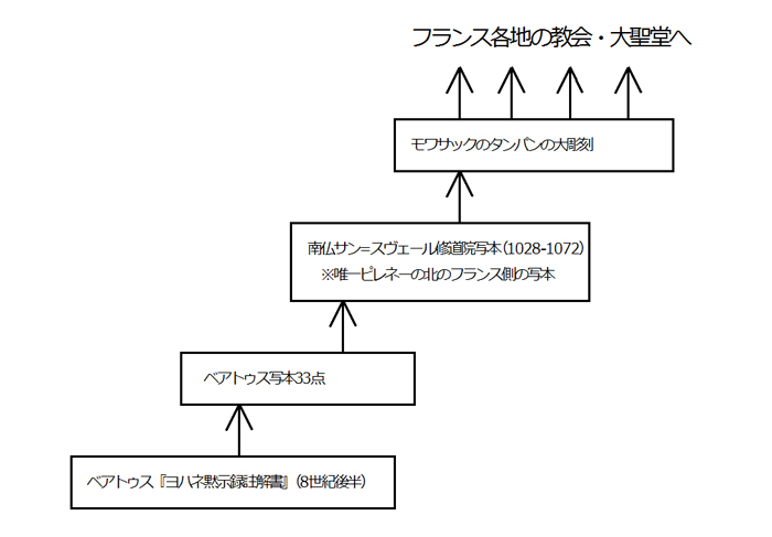 またスペインの『サン=スヴェールのベアトゥス本写本』がモワサックに伝わったという見方にも