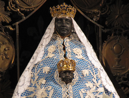 ル・ピュイ大聖堂のクロワトル 黒い聖母の像。下の顔は幼子キリスト。