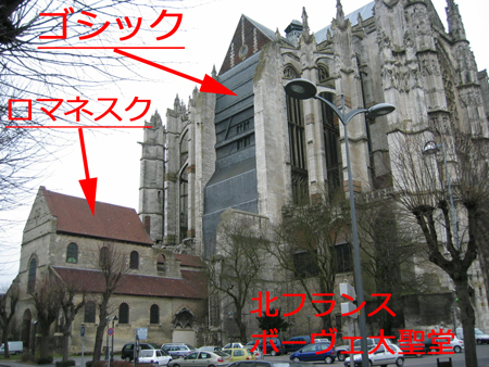 ロマネスクとゴシックの高さと大きさの違いが一目瞭然です。