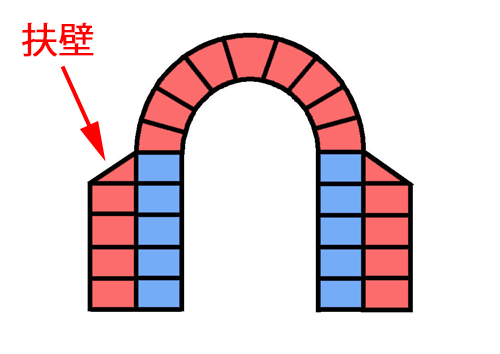 そこから斜めにアーチを架けて支えるものでした。人間が腕を伸ばして壁を支えるような感じです。