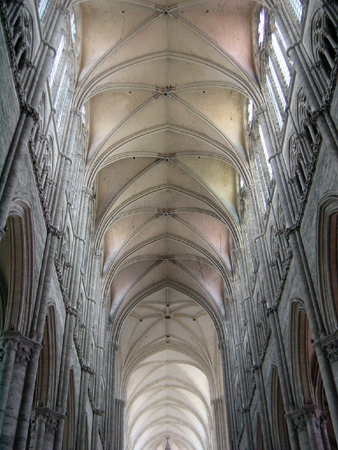 下の写真(↓)は、北フランスのアミアン大聖堂(Cathédrale d'Amiens)の身廊部分の天井です。