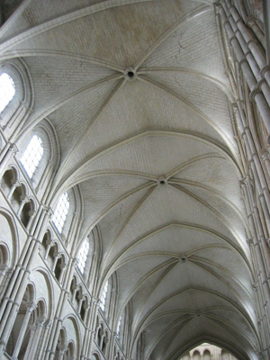 アミアン大聖堂の身廊のヴォールト(2001.08.13)。 4分交差リブ・ヴォールト。