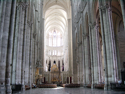次の写真は、今回の授業で何度か出てきた、北フランスのボーヴェ大聖堂の内部の、