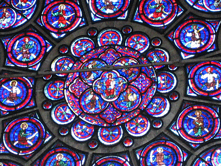 北フランス、ラン大聖堂(2004.03.24)のバラ窓 同、バラ窓部分の拡大