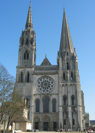 ゴシック大聖堂では、教会正面は左右に2つ塔が立つ双塔構造となります。