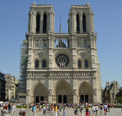 シテ島とノートル=ダム大聖堂 ノートル=ダム大聖堂の西ファサード(2001.8.14)
