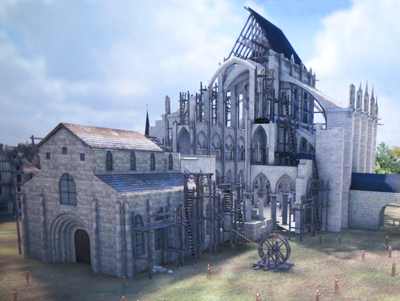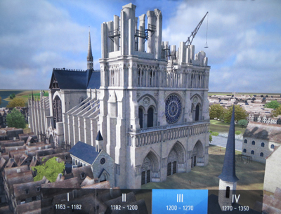 古い大聖堂を取り壊しながら新しいノートル=ダム大聖堂を建設。 西の塔の建設。