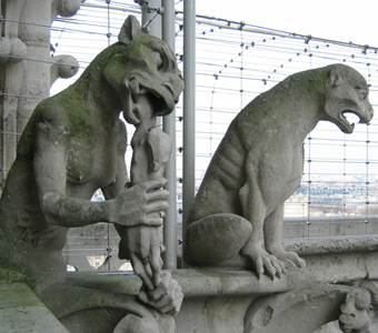 上階の欄干部分には、怪獣や悪魔などの彫像やガーグイユ(水落とし/雨樋)があります。