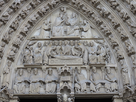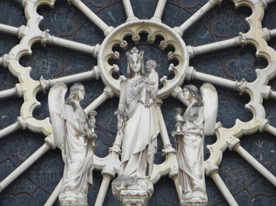 マリアの左右には、このカテドラルの建設者モーリス・ド・シュリー司教(左)と