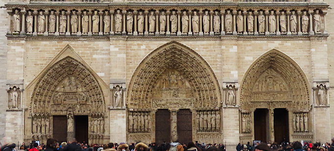 西ファサードの一番下には3つのポルタイユ(扉口)が並んでいます。