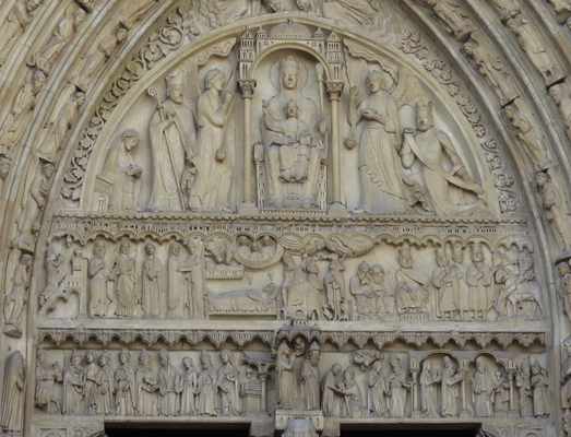 タンパンのうちの上2段は1170年頃の彫刻で、