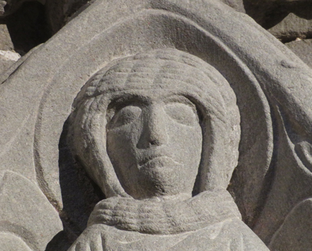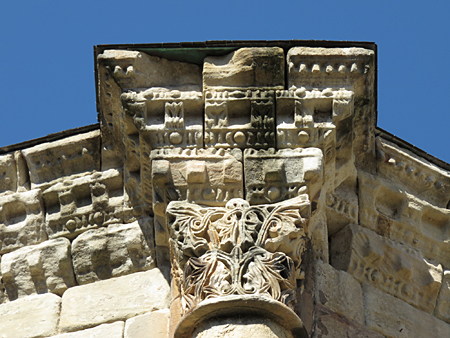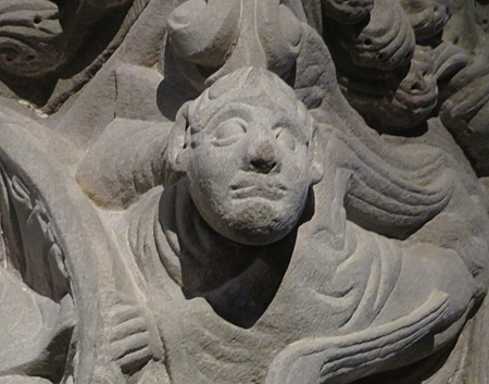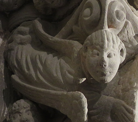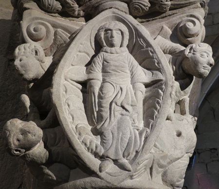 下の写真(右)は、修道院の建物の出入口についている柱頭彫刻です。