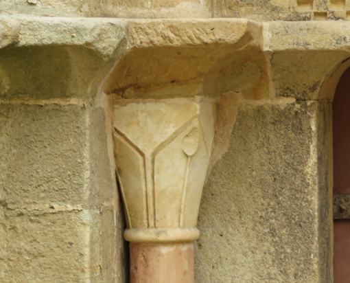 (右)はそこに付いている壁付き円柱の柱頭彫刻です。