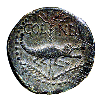 左側はニームで見つかったローマ時代のコインです。ワニが彫刻されています。