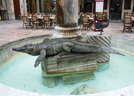 また、市内中心部にあるマルシェ広場(Place de Marché)には、大きなワニの噴水まであります。