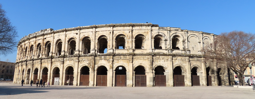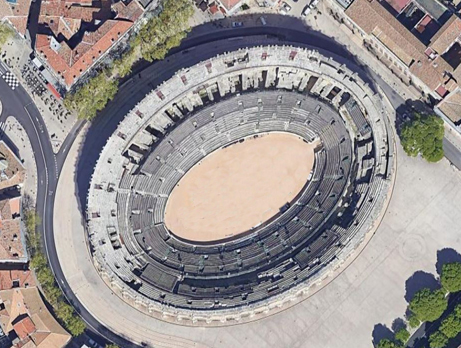ニームの円形闘技場(地図A)は、フランス語で「アンフィテアトル」とか「アレンヌ」と呼ばれ、