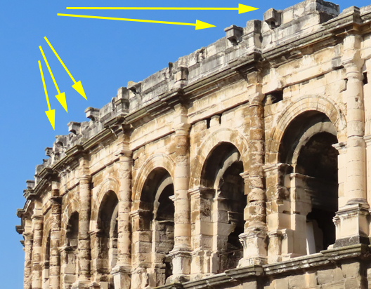 人々は暑い日差しを幕でさえぎり、快適に剣闘士たちの闘技を楽しんだのでしょう。